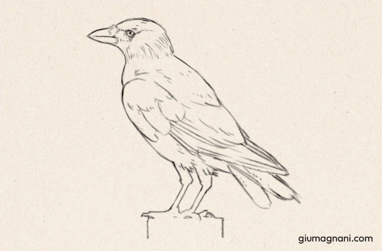 Paso 5: Dibujar los ojos y pico del pájaro - Plumas y detalles: Dibuja las plumas principales y detalles característicos del pájaro. Trata de simplificar los trazos y no sobrecargar el dibujo, no es necesario dibujar cada pluma, solo algunas marcas darán la impresión del plumaje.