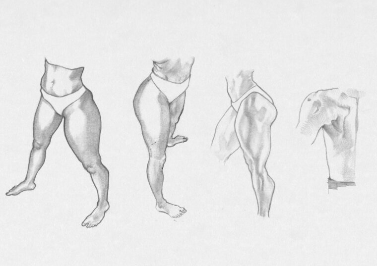 Colección de bocetos anatómicos de práctica realizados en el año 2021. Usé lápiz grafito en una papel blanco liso de 110 gramos.